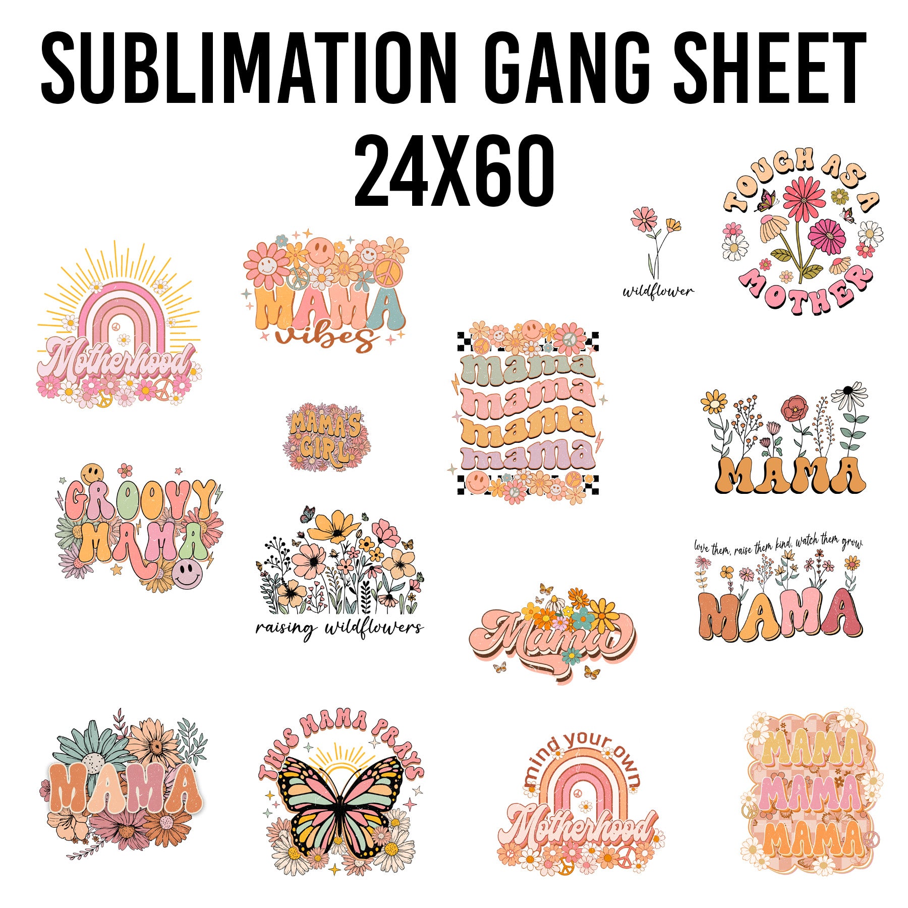 Retro Mama Sublimation 24x60 Gang Sheet